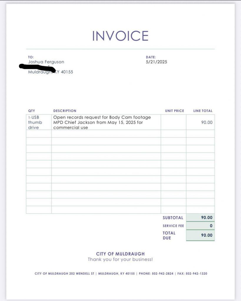 In response to the inflated charge, Joshua Ferguson of Muldraugh Register LLC has taken formal action, filing a complaint with the Kentucky Attorney General’s Office, citing violations of the Kentucky Open Records Act, which limits agencies to charging only the actual cost of producing records.
